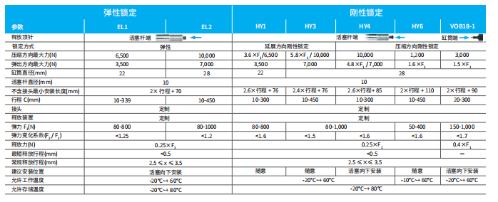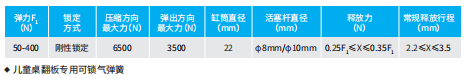 〉〉产品优势1、无级锁定,任意角度刚性锁定 2、双向阻尼设计,开合轻柔轻柔 3、进口核心零件,性能稳定经久耐用 4、零甲醛环保图层,安全环保适用于:儿童桌桌板角度调节和锁定材 质 :钢制表面处理:活塞杆黑色渗氮,缸筒黑色或银色油漆可锁气弹簧技术参数⸺通用